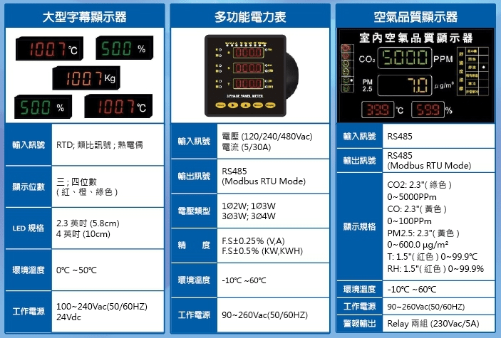 顯示/控制器 19-數位顯示器 -YD2007下載 19-多功能顯示器-AM5H下載 19-LCD顯示控制器-SD800下載 20-PID溫控錶 P系列下載 20-VD系列溫控器下載 21-累積計數器-CA-661K下載 21-流量表 VM2-FM下載 22–大型顯示器 LCH下載 23-電力電表 CP500-PM900下載 24-空氣品質顯示器 CO2-PD下載 24-空氣品質顯示器 CO2-PD下載 25-訊號模擬器 HS-A2 下載